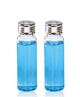 Rose 10mL Clear Glass Screw Headspace Vial 22.5*46mm 18mm Silver Color Open Top Metal Cap (8mm hole) with 17.5mm Blue PTFE/White Silicone Septa 1.5mm Thick Vial Cap Septa are Pre-Assembled together. 100pcs/pk. Learn More